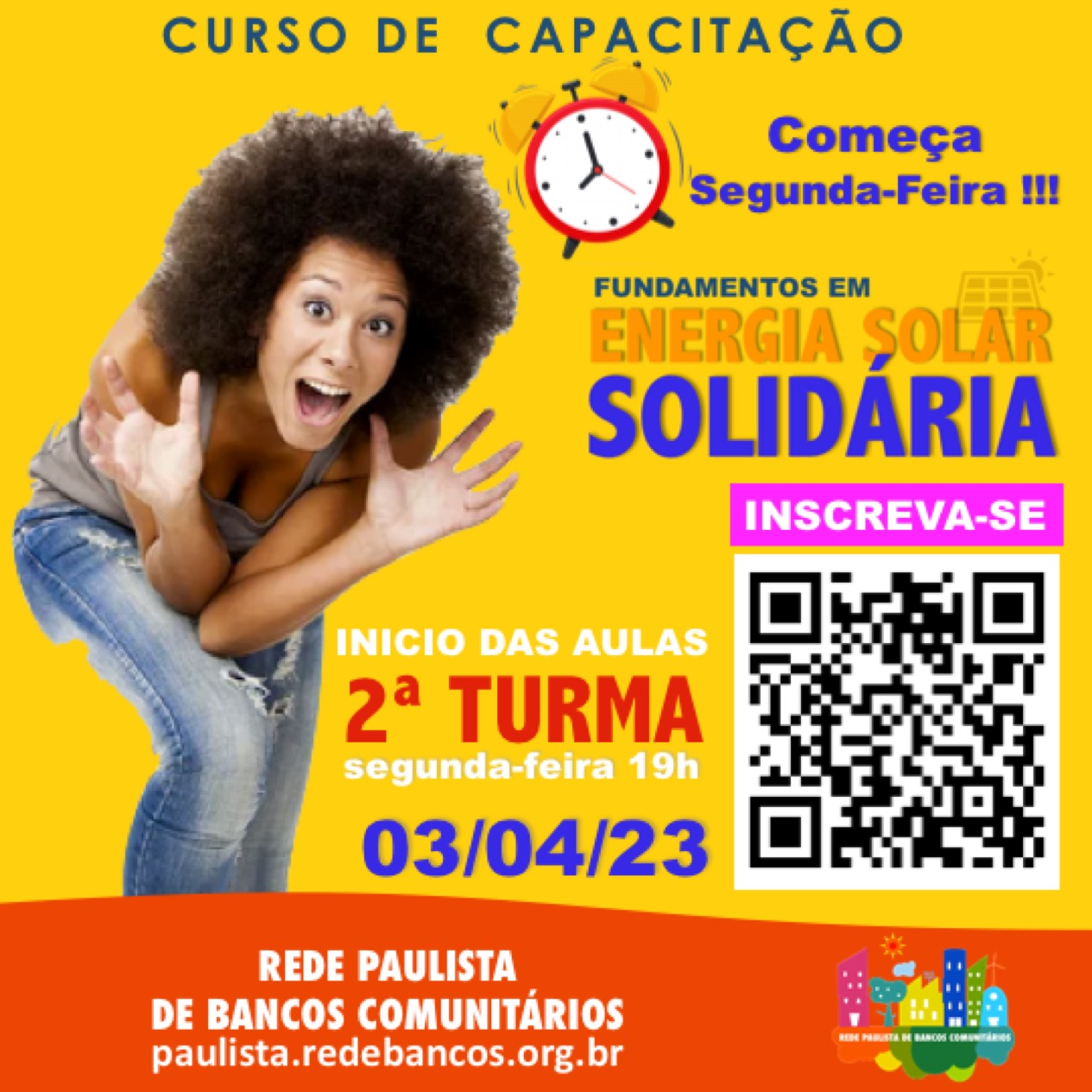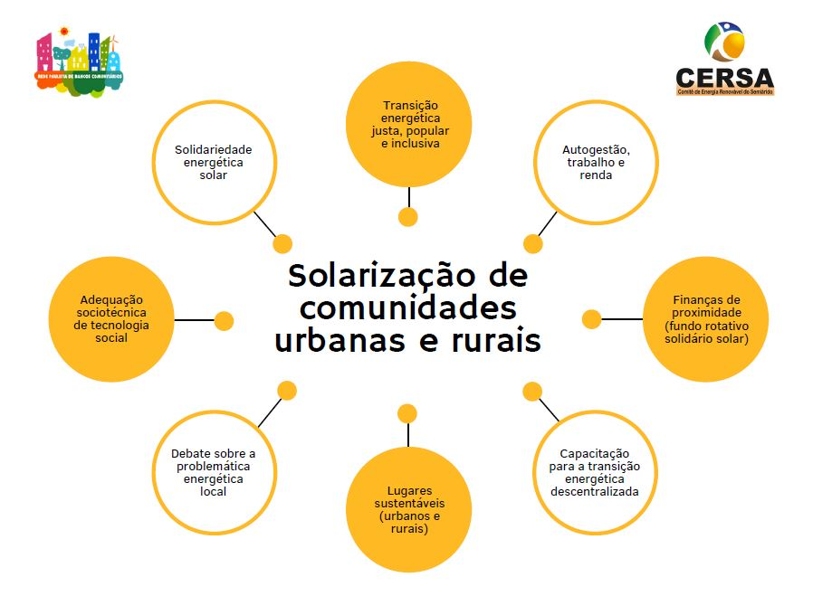 Com o objetivo de estimular o uso de energia limpa e sustentável nas comunidades socialmente mais vulneráveis, de economizar na conta de luz e desenvolver negócios através de cooperativas e/ou associações de moradores, a Rede Paulista de Bancos Comunitários em parceria com o CERSA (Comitê de Energia Renováveis do Semiárido) lançaram dois cursos à distância de capacitação em energia solar solidária.